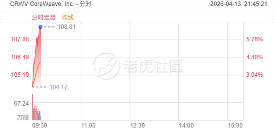 4月13日,美股AI基礎設施雙雄延續強勢,CoreWeave升逾6%,Nebius升逾3%。