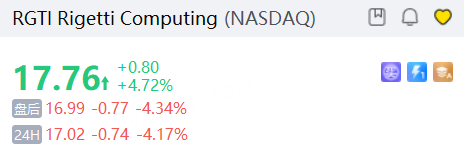 量子計算公司Rigetti Computing跌超4%,季度營收不及預期。