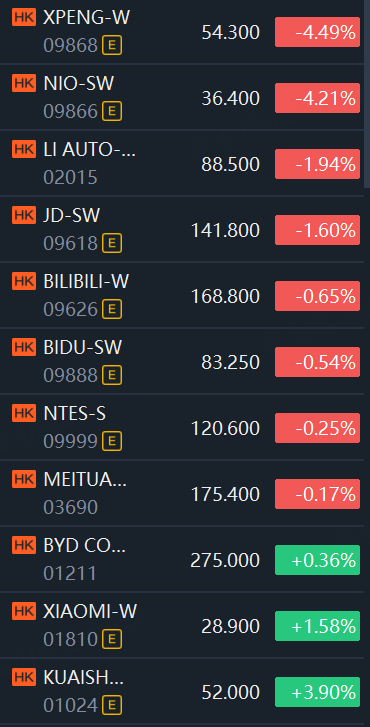 Li Auto-W fell by 1.94%. The company announced that its L6 model has delivered over 150,000 units in the seven months since its launch.