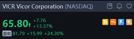 Vicor Corporation大漲24%。三季度收益為每股0.63美元,比分析師普遍預期的0.14美元高出350%,與去年同期相比增長了142.31%;季度銷售額為1.104億美元,比分析師普遍預期的9540萬美元高出15.72%,同比增長了18.50%。