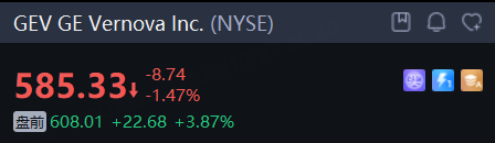 電力巨頭 GE Vernova Inc. 漲3.87%。消息面上,GE Vernova已同意收購變壓器製造商Prolec GE中其尚未持有的股份,當前人工智能熱潮正推動電力行業產品與服務需求激增。