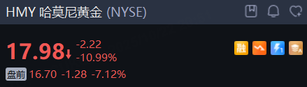 貴金屬概念股盤前延續弱勢, 泛美白銀 跌3%, 科爾黛倫礦業 跌6%, 金田 跌5.7%, 金羅斯黃金 跌4.68%, 哈莫尼黃金 跌超7%。