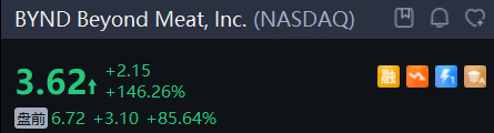 Beyond Meat, Inc.暴漲超85%,此前三個交易日飆升600%!本週一,Roundhill投資公司宣佈將Beyond Meat納入其主題型ETF之Roundhill 迷因股ETF(MEME);週二,Beyond Meat又宣佈與沃爾瑪達成協議,將在全美更多門店擴大分銷範圍,進一步刺激了行情。