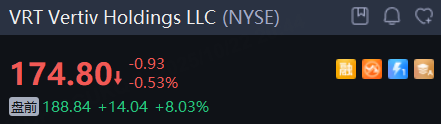 Vertiv Holdings LLC 漲超8%,三季度實現營收26.76億美元,超市場預期。