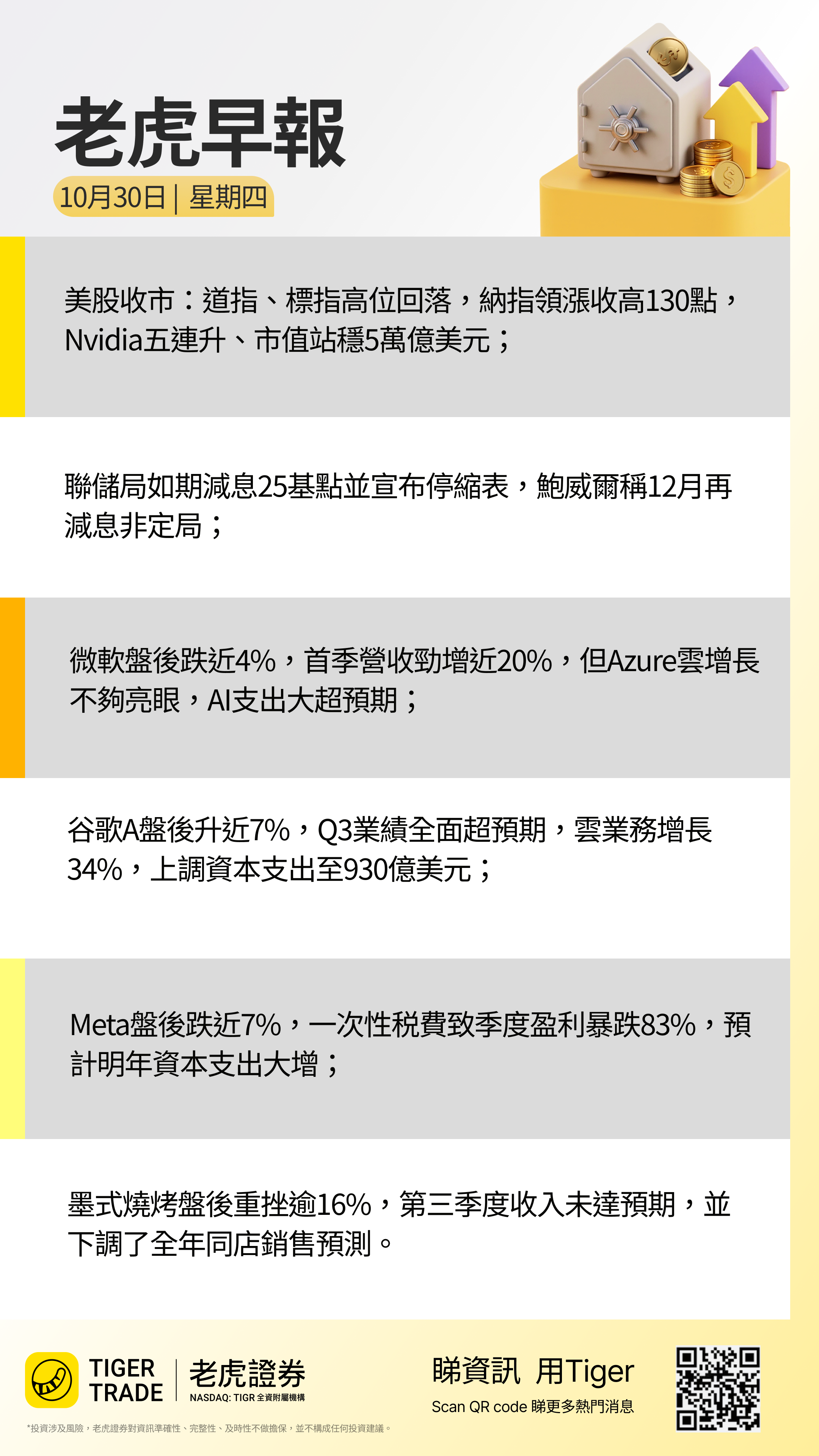 - 聯儲局如期降息25基點並宣佈結束QT,鮑威爾稱12月降息絕非板上釘釘;