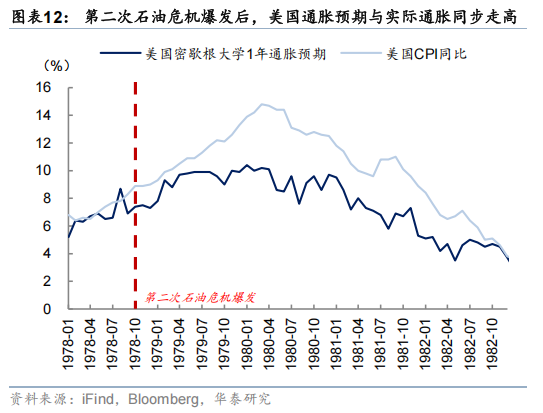 我們選取70年代後期石油危機和2022年俄烏衝突作為樣本,去掉佈雷頓森林體系解體影響較大的70年代初期。這兩段經歷有相似的背景環境:在能源供給側衝擊發生之前,寬鬆政策刺激下經濟都從低谷(分別為第一次滯脹和疫情衝擊)強勁修復,美國通脹已經處於上升通道且水平較高。
