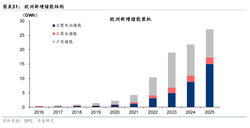 從板塊受益順序看,本輪能源價格上漲對新能源產業鏈需求催化的傳導路徑或為儲能>光伏>風電,分佈式>集中式,戶用、工商業儲能具備更強的彈性。一方面,油氣價格向電價傳導,電價抬升將直接提升分佈式光伏+儲能系統的投資回報率、縮短回本周期;另一方面,傳統能源成本上升也在加速新能源與儲能系統(大儲)相對傳統能源的平價進程,推動終端需求釋放。歷史經驗已驗證這一邏輯。在俄烏衝突期間,歐洲天然氣與電價大幅上漲,居民側電價顯著抬升,戶用光儲成為降低用電成本的重要手段。2023年歐洲新增戶用光伏裝機約17.6GW、戶用儲能約12.2GWh,分別按年增長約38%和94%,歐洲市場戶儲廠商艾羅能源、固德威也均在2022年實現了儲能逆變器出貨的大幅增長。