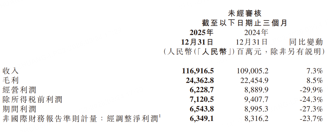 2025年,「手機×AIoT」分部收入為人民幣3,512億元,按年增長5.4%;「智能電動汽車及AI等創新業務」分部收入為人民幣1,061億元,按年增長223.8%。