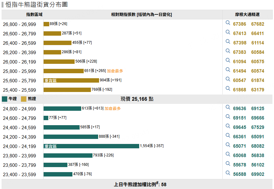 恒指:恒指上日反彈逾500點 資金流向反映投資者或傾向反手造淡 恒指購 23979/沽 22976