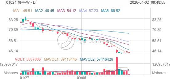 快手-W:快手於45元水平暫見承接 好倉連續19個交易日錄淨流入 快手購 27454/牛 61833/熊 68100