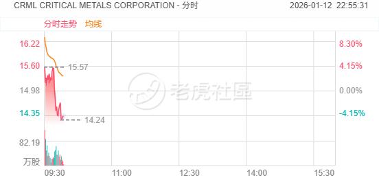 周一,稀土概念股走勢分化, United States Antimony Corp 升逾16%, MP Materials Corp. 升逾2%;另一方面, CRITICAL METALS CORPORATION 高開低走,截至發稿跌近5%。