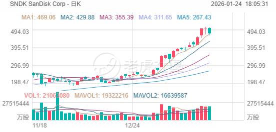 受益於AI投資浪潮刺激的「存儲周期反彈」,SanDisk連創新高,今年漲幅已達99.61%。