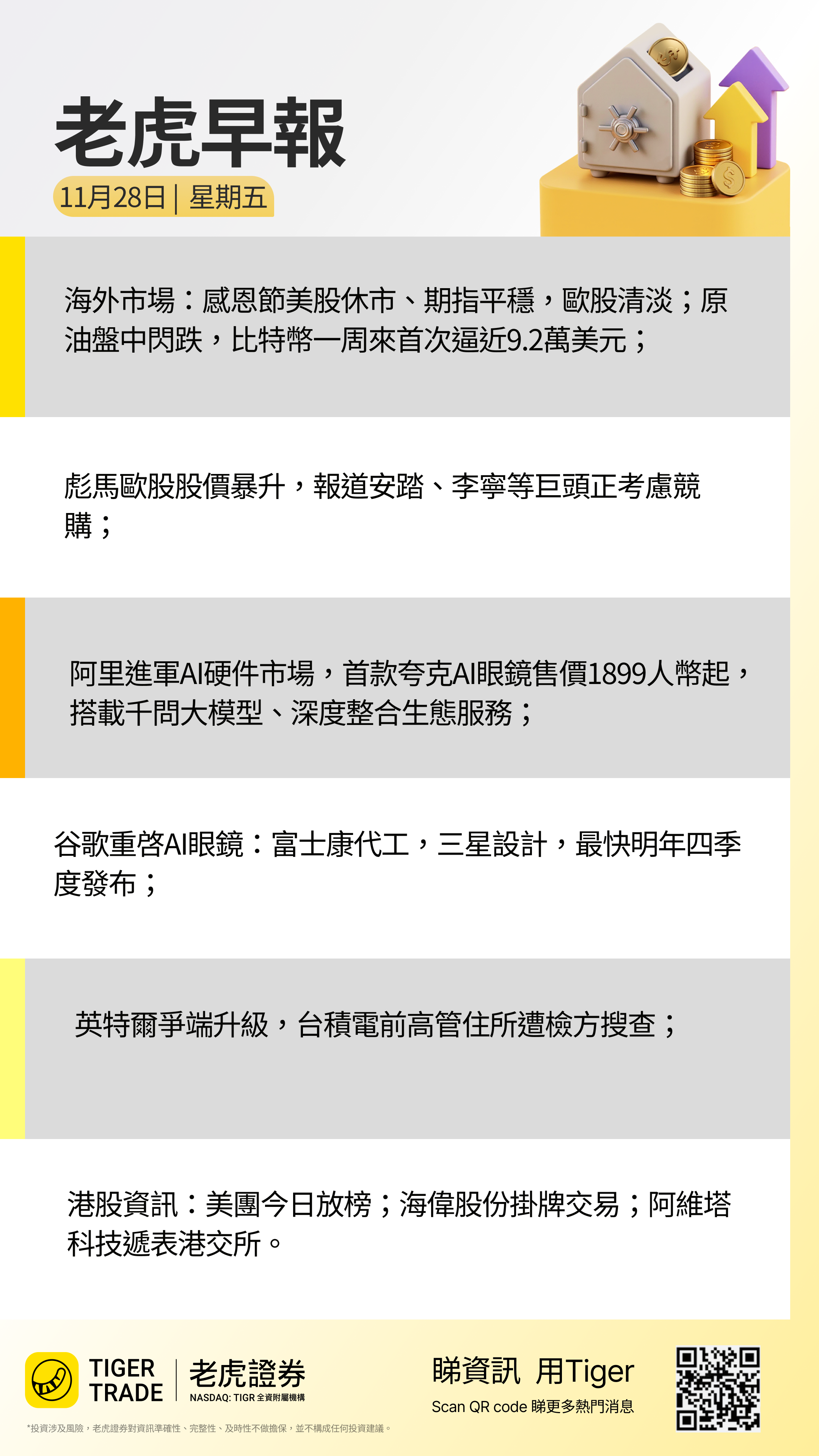 在美國市場因感恩節假期休市的背景下,全球市場交投清淡,波動有限。 美股指期貨微漲。