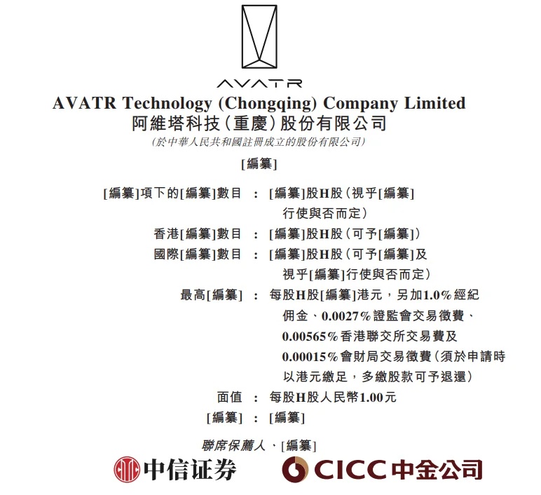 據港交所文件:阿維塔科技(重慶)股份有限公司向港交所提交上市申請書,聯席保薦人為中信證券、中金公司。