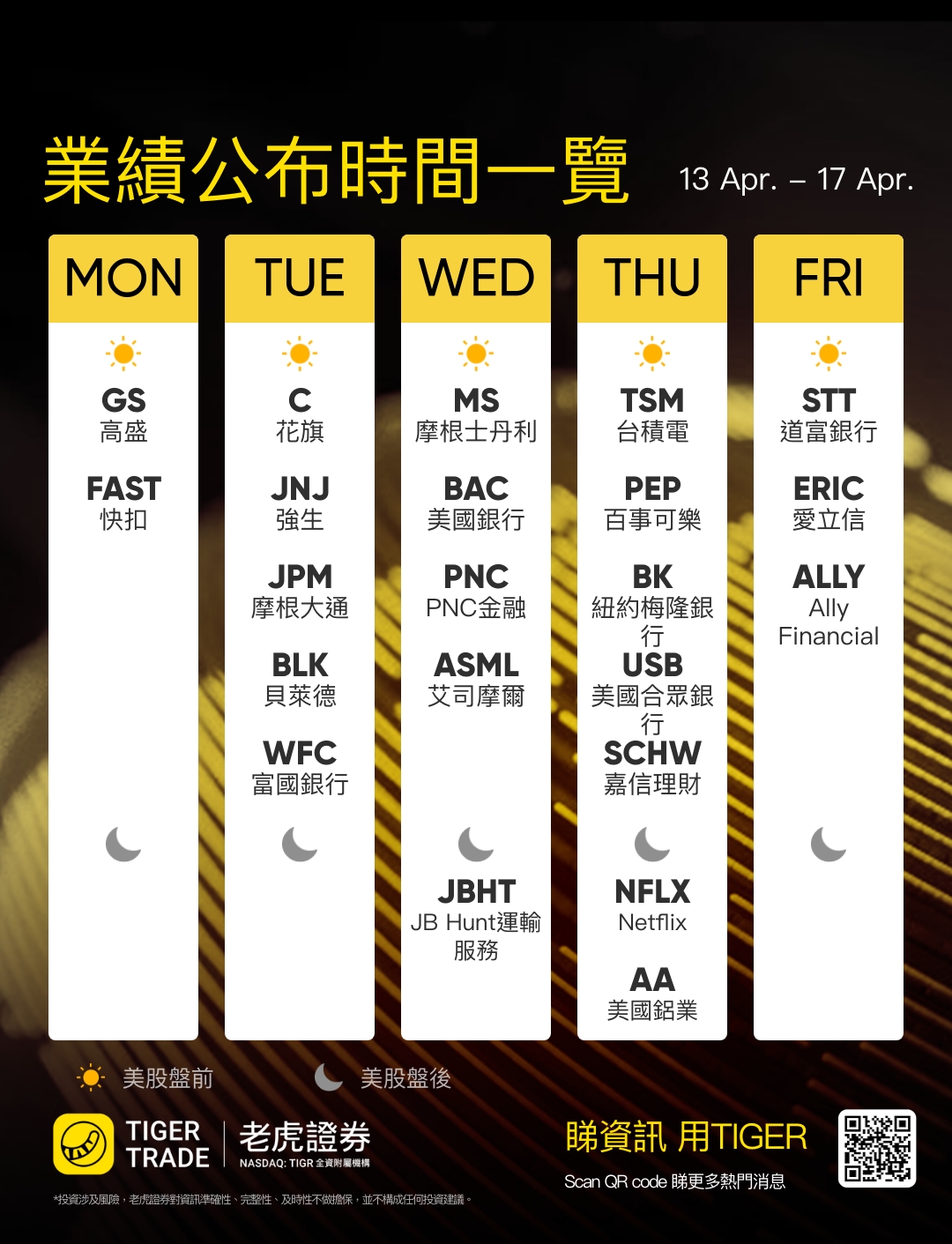 業績:花旗、強生、貝萊德、車美仕、摩根大通、富國銀行(盤前)公布業績。