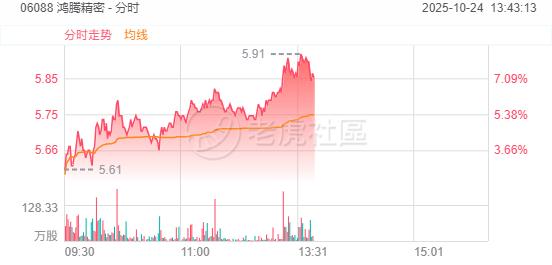 10月24日,蘋果概念股集體走強,鴻騰精密漲超8%,偉仕佳傑漲超6%,高偉電子漲超5%,藍思科技、富智康集團、丘鈦科技漲超2%,比亞迪電子漲超1%。