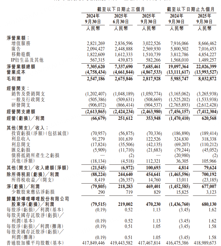 淨營業額 達到 人民幣76.9億元(約 10.8億美元),同比增長 5%。其中,廣告收入 為 人民幣25.7億元(約 3.61億美元),同比增長 23%,表現尤為突出。