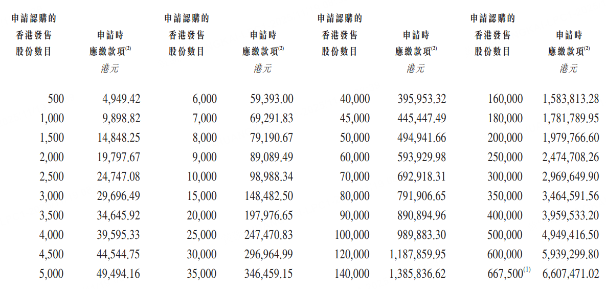 每手500股,入場費4949.42港元。