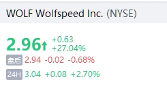 9月16日(週二)美股夜盤碳化硅巨頭Wolfspeed續漲近3%,昨日漲超27%,此前宣佈200mm碳化硅材料產品組合開啓大規模商用