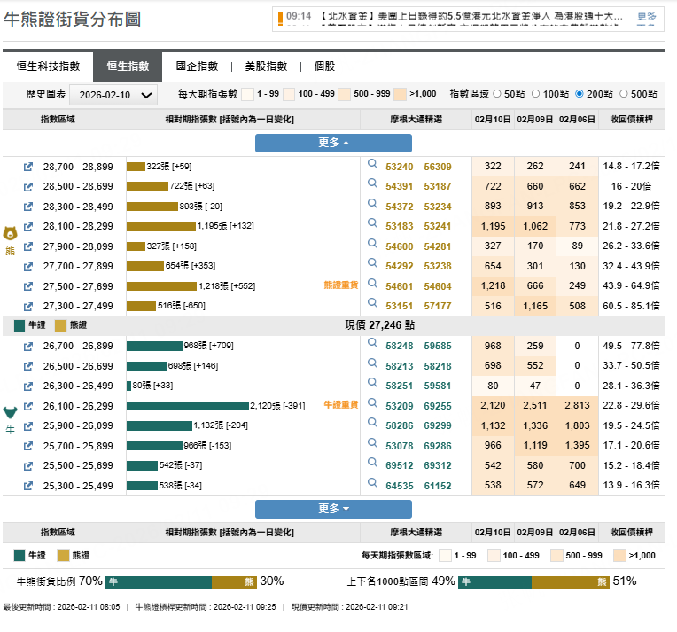 恒指好淡倉資金流或反映投資者傾向反手造淡,淡倉上日錄約5,007萬港元淨流入,恒指牛恒指摩通八九牛S.C /熊恒指摩通八乙熊G.P 。