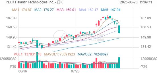 Palantir隔夜股價暴跌逾9%,連續第五個交易日走低,5日累計回調逾15%。此前,該公司剛公佈首個季度營收突破10億美元的財報,股價一度創下新高。儘管2025年迄今漲幅仍超100%,分析指出市盈率已高達245倍,估值壓力引發投資者回調情緒。