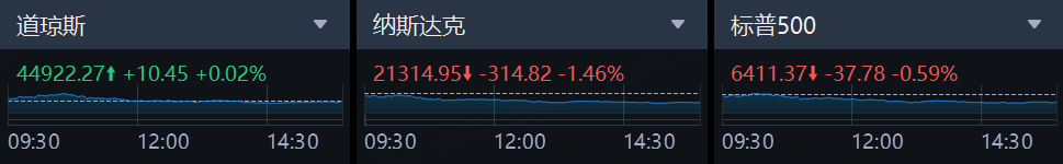 美東時間週二,美股三大指數收盤升跌不一,截至收盤,道指漲10.45點,漲幅為0.02%,報44922.27點;納指跌314.82點,跌幅為1.46%,報21314.95點;標普500指數跌37.78點,跌幅為0.59%,報6411.37點。