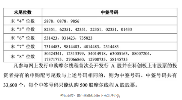 根據中籤規則來看,摩爾線程的中籤號碼共有33600個,每個中籤號碼能認購500股摩爾線程A股股票,中一簽需繳款57140元。
