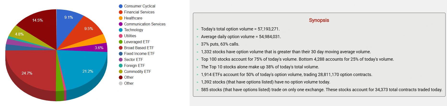期權市場總成交量57,193,271張合約,其中看漲期權佔比63%。