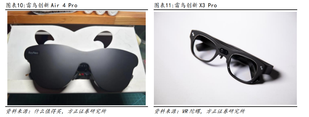 ①品牌端,TCL 電子投資雷鳥創新,雷鳥創新自研核心光學模組的光引擎+ 光波導,依託 TCL 華星的半導體級光刻/刻蝕設備與工藝,直接支撐雷鳥單 層光柵的高精度加工,依託 TCL 華星 MicroLED 微屏技術與雷鳥自研單層波 導架構結合,打造雙目全綵 MicroLED 光波導方案;海信視像發佈自有品牌 AI 眼鏡 Vidda G11 智能眼鏡、MR V3 Pro,與 XREAL 官宣技術整合、產品研 發,海信輸出顯示技術與 AI 大模型能力,XREAL 提供光學引擎與空間計算 技術。
