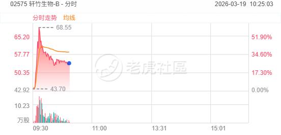 3月19日,軒竹生物-B一度飆升60%!吡洛西利片一線適應症近日獲批,入通後資金搶跑佈局。