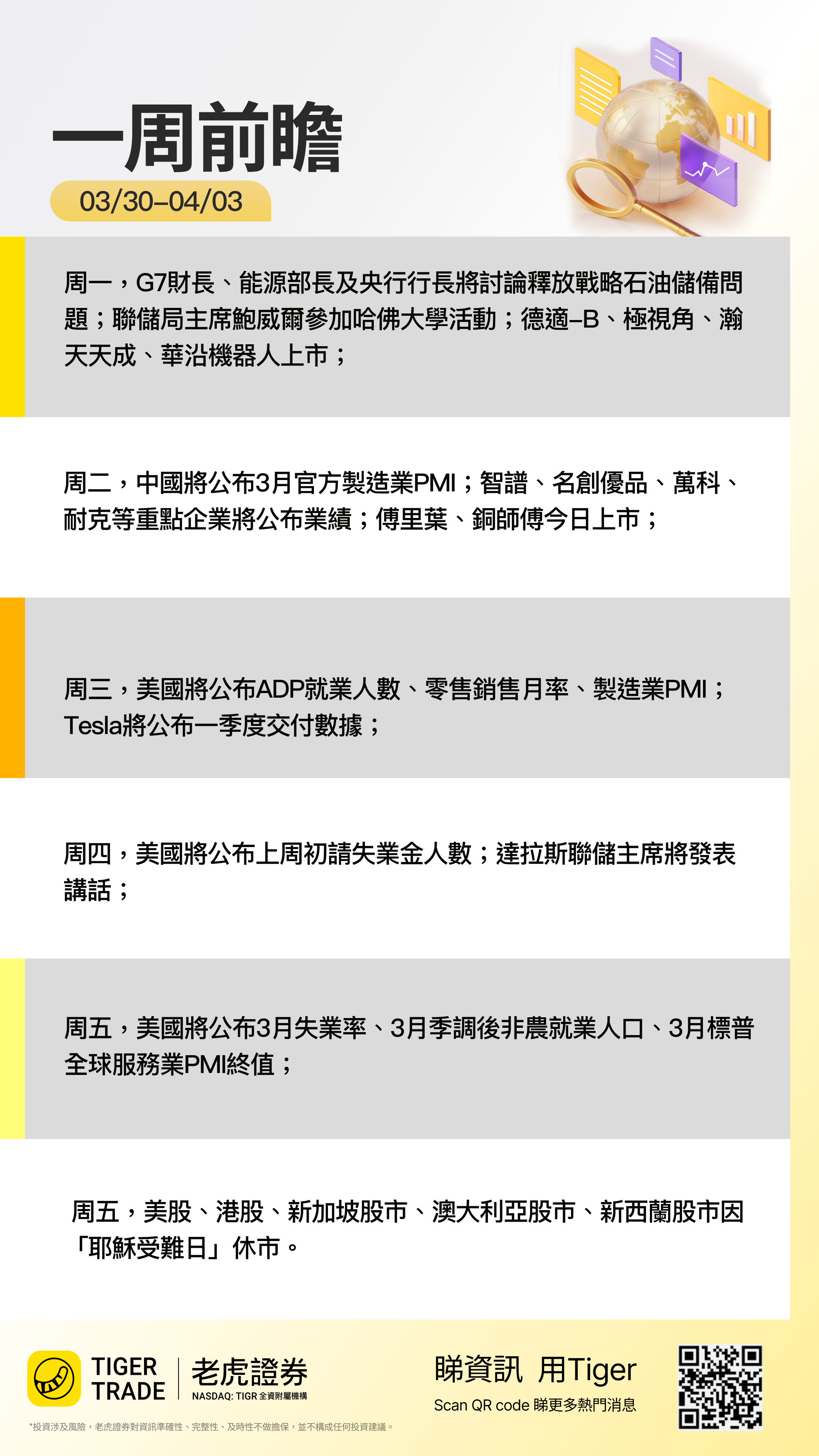 美國將公布3月ADP就業、非農就業、製造業及服務業PMI等重磅經濟數據。