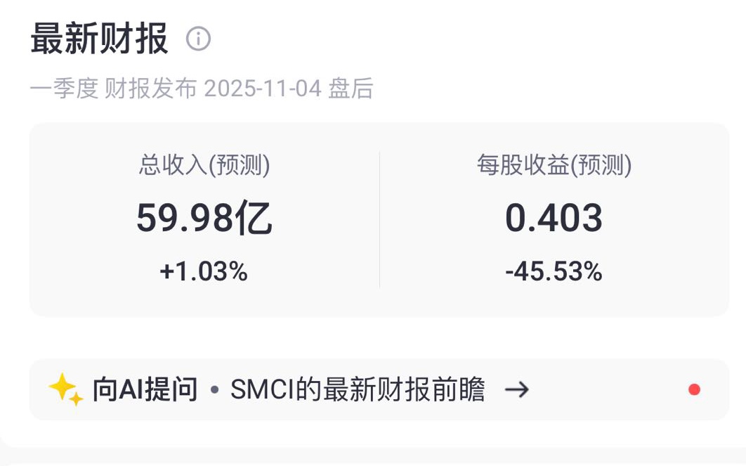 根據Tiger Trade數據,市場一致預期超微電腦2026財年第一季度營收59億美元同比增長1.03%,每股收益0.403美元。
