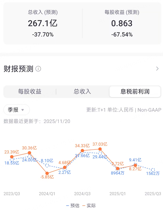 根據老虎國際APP的數據,分析師目前預期理想汽車三季度營收267.1億元人民幣,同比減少37.7%;每股收益0.863元,同比減少67.54%;息稅前利潤1562萬。