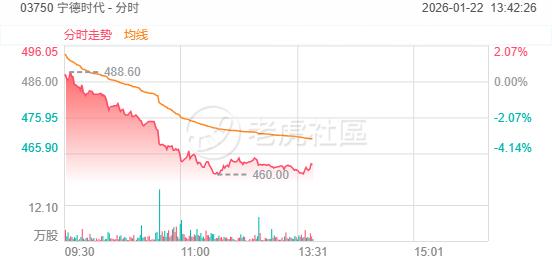 1月22日,寧德時代跌超5%,報461.8港元,成交額14.85億港元。