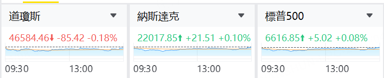 中概股方面:整體表現分化,電商及新能源車普遍承壓;阿里巴巴跌2.12%至119.72美元,拼多多跌1.36%至99.54美元,小鵬汽車跌1.03%至17.22美元。亮點個股中,小i機器人(AIXI)暴漲142.60%至1.95美元,短線交易活躍。