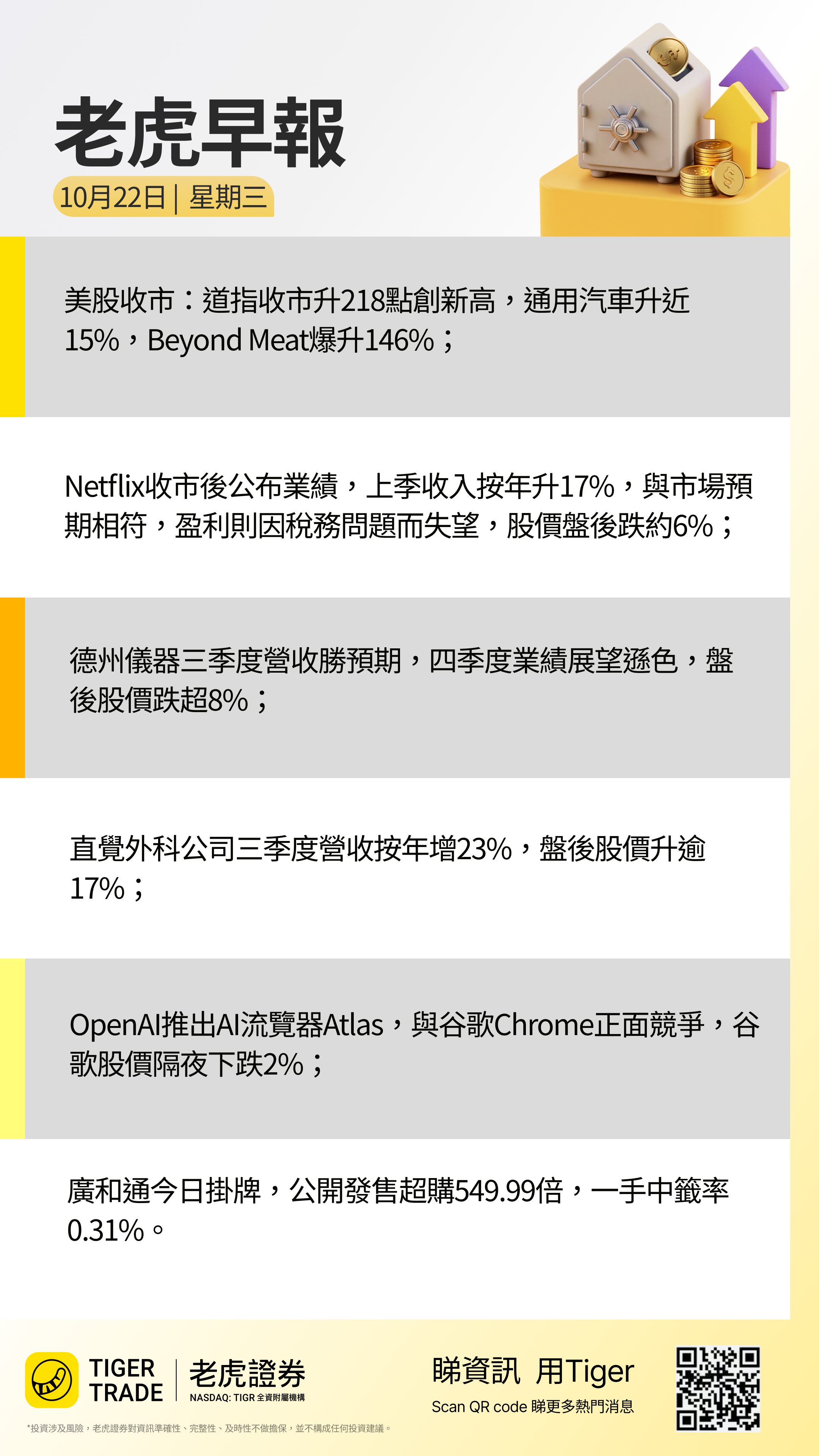 另一隻傳統產業股通用汽車漲近15%,此前公司上調全年業績指引並超出市場預期。