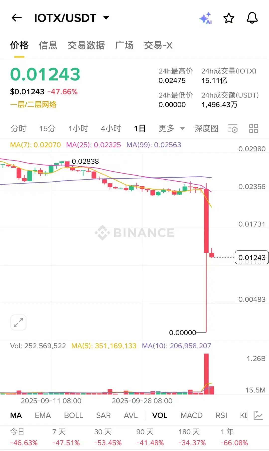 當特朗普的關稅消息引爆市場恐慌時,做市商不得不優先保證大項目的安全,把原本分配給小幣種的資金抽走。結果,山寨幣市場徹底失去了對手盤,賣壓砸下來無人承接,價格出現近乎「自由落體」的暴跌。IOTX 等代幣一度跌近歸零,正是流動性枯竭的最直觀體現。