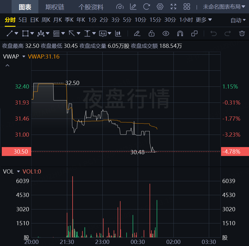 10月30日,美股夜盤時段,熱門中概股短線下跌,嗶哩嗶哩跌近5%,阿里巴巴、網易跌超3%,百度、金山雲跌超2%。