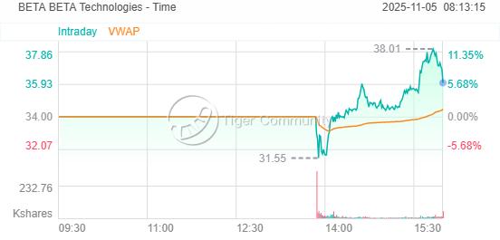 電動飛行器公司 BETA Technologies 週二在紐約證券交易所首次亮相,股價收漲近 6%,報 36美元。