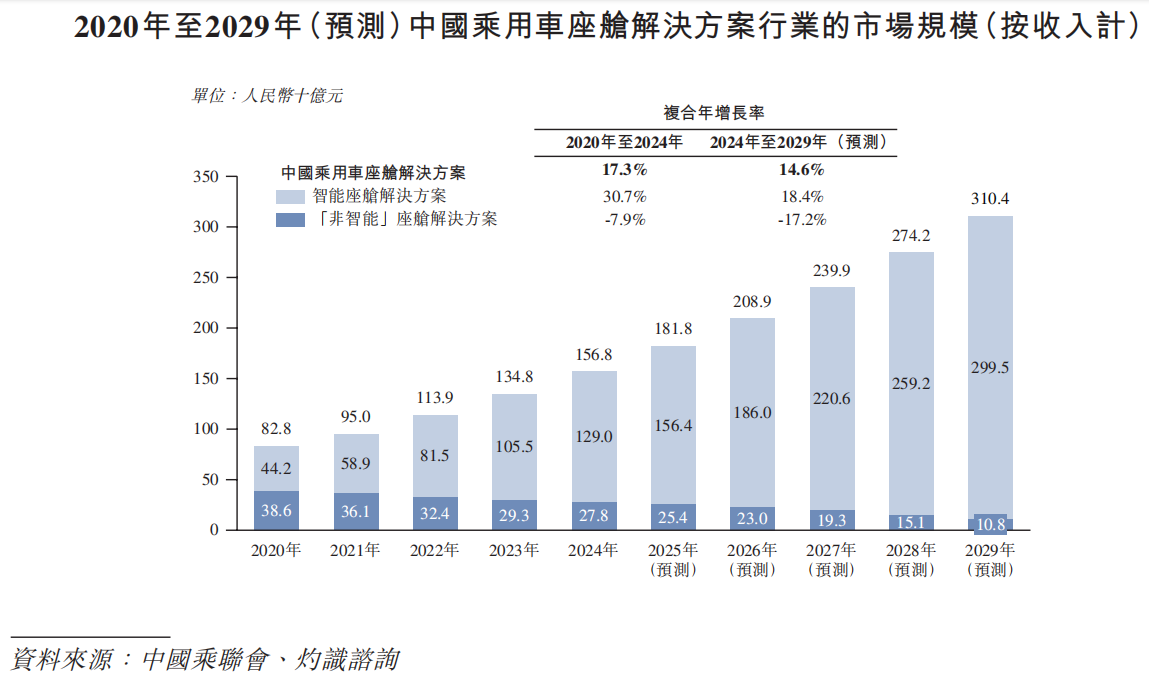 博泰車聯即將登陸港股市場,這不僅是一家企業的資本化征程,更折射出中國乘用車智能座艙行業的巨大成長空間。根據灼識諮詢數據,2024年中國乘用車智能座艙解決方案行業規模已達1290億元,預計2029年將增至2995億元,五年複合增長率達18.4%。作爲智能座艙核心組件的域控制器,中國乘用車域控制器解決方案按出貨量計,其滲透率從2020年的13.7%提升至2024年的44.1%,預計2029年將超過90%。這意味着,未來五年,中國智能座艙解決方案行業將迎來爆發式增長。博泰車聯網作爲行業龍頭之一(2024年出貨量市佔率7.3%),無疑將深度受益於這一趨勢。