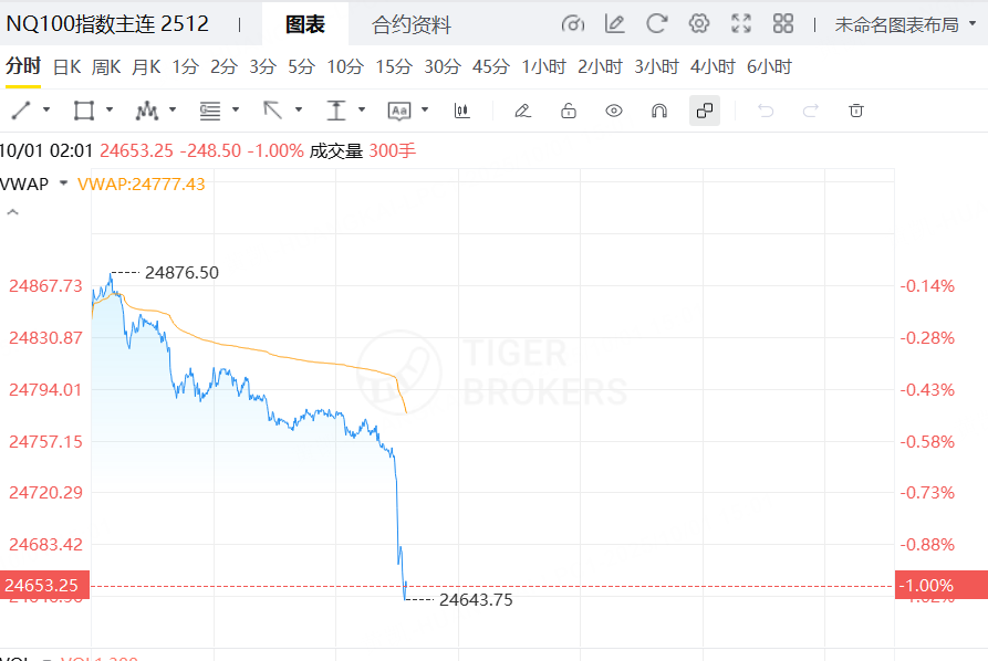 受關門消息影響,週一美股夜盤時段,納指期貨跌幅擴大至1%,標普期貨跌0.8%。