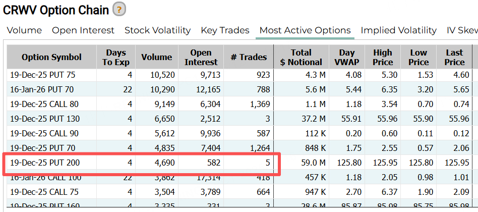 期權方面,CoreWeave的合約表現出投資者的複雜心態。昨日前十大成交中,既有80美元的認購合約,也有200美元行權價的認沽合約。預計後市行情仍將出現波動。