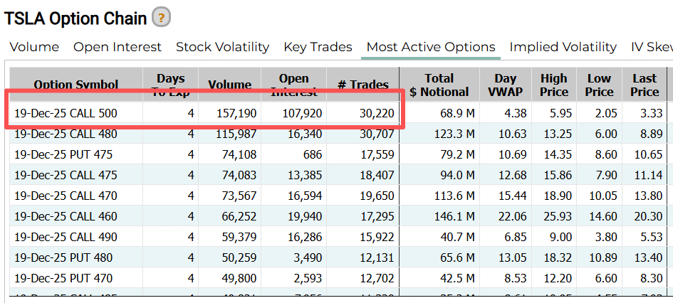 期權方面,特斯拉昨日成交量排名第一的是一張認購合約,到期日為本週五(19日),行權價達500美元,超歷史紀錄。