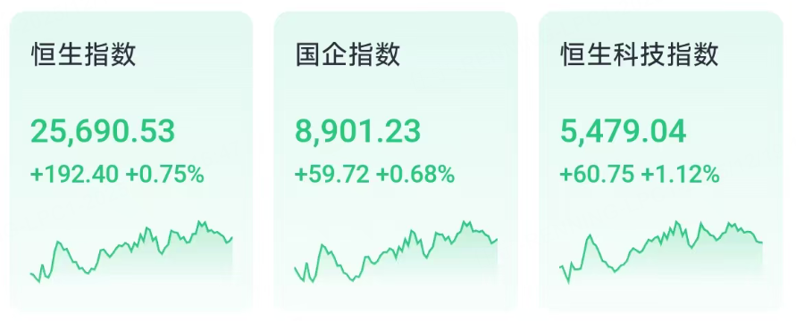 12月19日週五,港股溫和收漲,核心指數延續反彈。恒生指數收報25690.53點,漲0.75%;國企指數收報8901.23點,漲0.68%;恒生科技指數表現更強,收報5479.04點,漲1.12%。大型科網股活躍,帶動情緒回暖。
