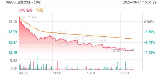 新消費概念股普跌,尾盤延續弱勢。 衛龍美味 跌超6%, 布魯可 、 奈雪的茶 、滬上阿姨、名創優品、泡泡瑪特跌超5%,蜜雪集團、古茗跌超4%。
