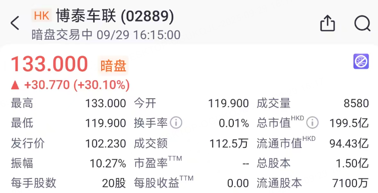9月29日週一,「智能座艙第一股」 博泰車聯 開啓暗盤交易,截至發稿漲超30%,不計手續費每手賺超600港元。公司是中國最早開發智能座艙解決方案的企業之一。