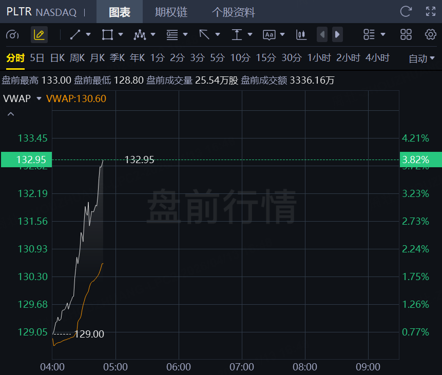 4月13日,Palantir盤前強勢拉升,現漲近4%!此前特朗普在社交媒體上發文稱「該公司已被證明擁有出色的作戰能力和裝備」。