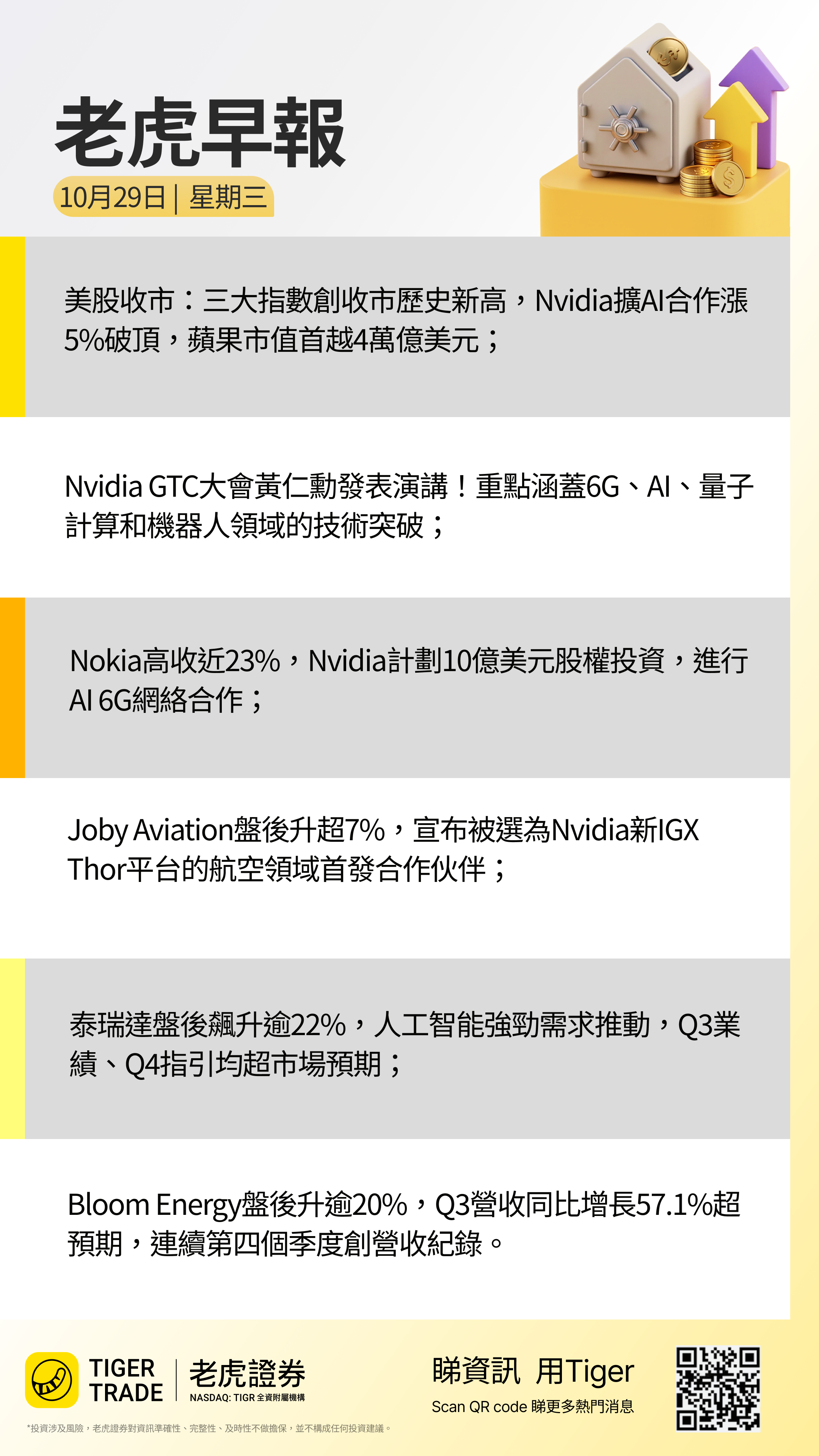 美股收盤:三大指數再刷歷史新高!黃仁勳GTC演講致英偉達狂漲5%,微軟、蘋果市值一度齊破4萬億美元