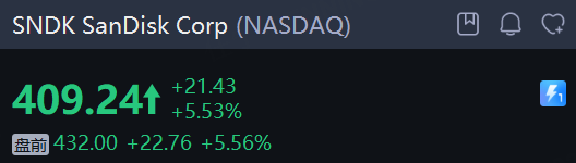 存儲概念持續火爆。SanDisk Corp 、美光科技升逾5%,均再創歷史新高。同時, 西部數據 升逾4%, 希捷科技 漲3.79%。花旗分析師認為,受AI智能體普及和AI CPU內存需求激增的驅動,存儲芯片價格將在2026年出現失控式上漲。野村分析師則判斷,這一輪始於2025年下半年的「存儲行業超級周期」將至少延續至2027年。
