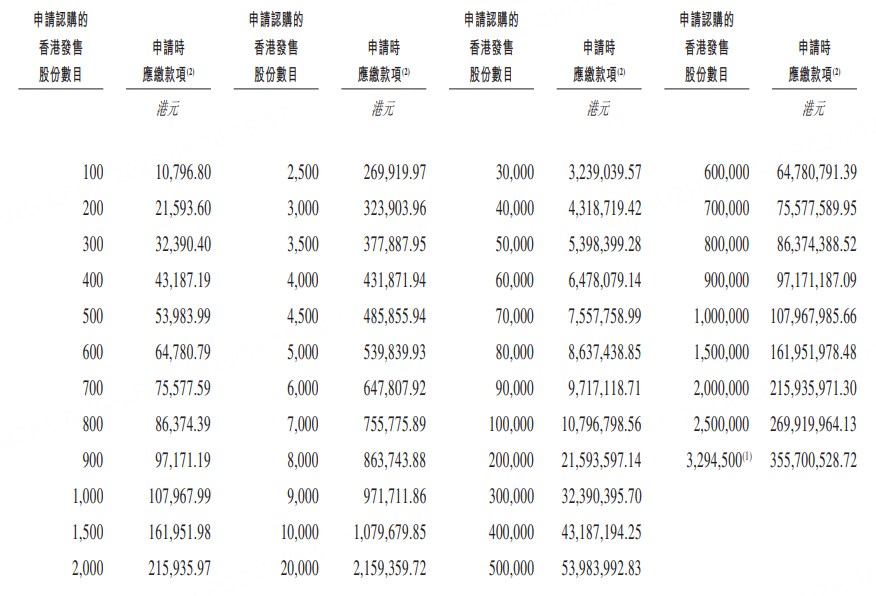 公司估計將自全球發售收取所得款項淨額約69.046億港元,當中假設超額配股權並無獲行使及發售價為每股發售股份106.89港元。